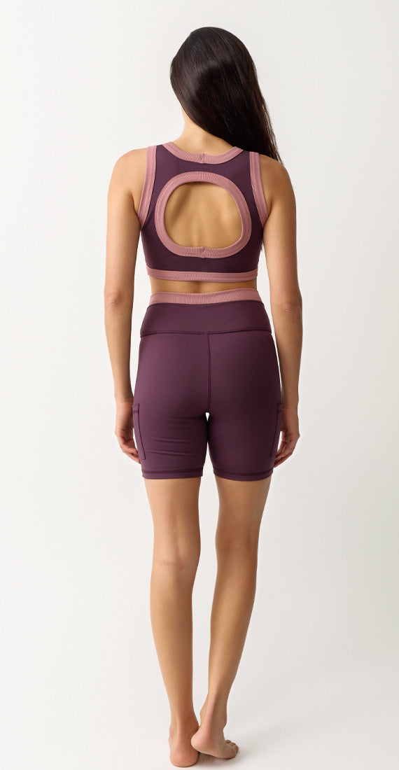 Diseñado para moverse contigo, el Biker Lavander combina compresión, suavidad y elegancia. Su tono ciruela con detalles en rosa empolvado aporta un toque sutilmente femenino, ideal para tus entrenamientos o looks casuales.