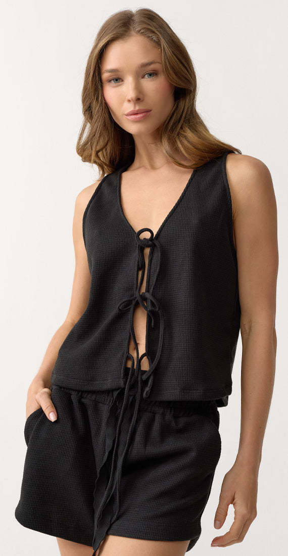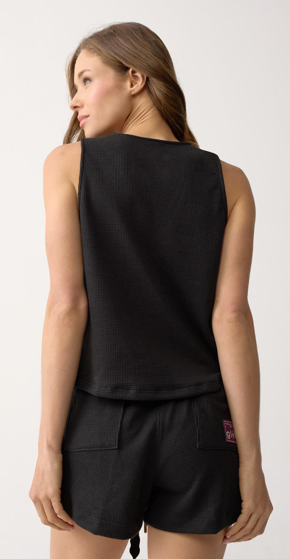 Ligera, suave y naturalmente chic. La Blusa Serena Waffer en tono Black Onyx redefine el equilibrio entre confort y estilo. Su textura tipo waffle y silueta relajada la convierten en una prenda versátil que acompaña tu ritmo —ya sea en movimiento o en calma.
