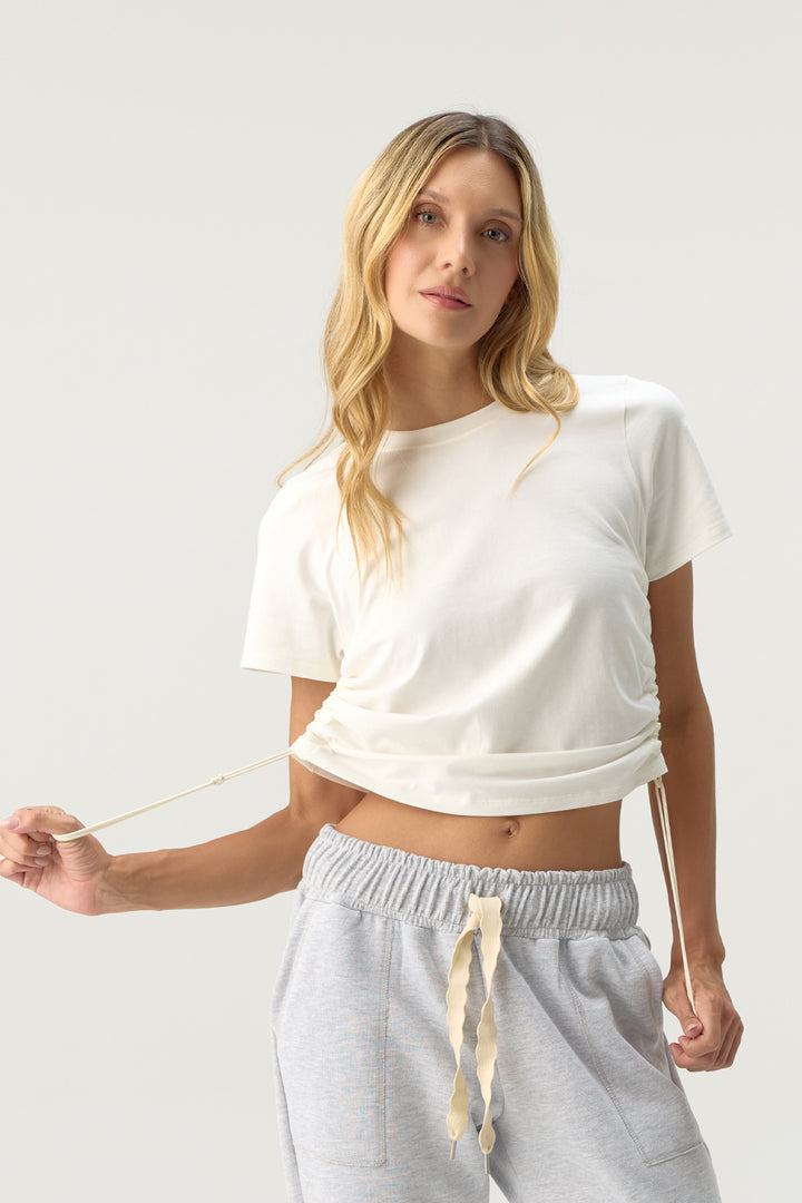 Diseñada para acompañarte en movimiento, la Nomad Tee combina confort y estilo con un twist contemporáneo. Su detalle ajustable en los laterales te permite personalizar el fit, logrando desde un look relajado hasta uno más definido.