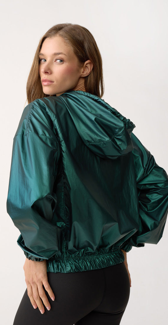 Nuestra Halo Windbreaker es la pieza mas iconica de nuestra colección. El material metalizado la hace el item clave para completar tu look. -Silueta con capucha, -Forro interno suave, - Cierre suave, - Bolsillos laterales, -Tancas graduables.