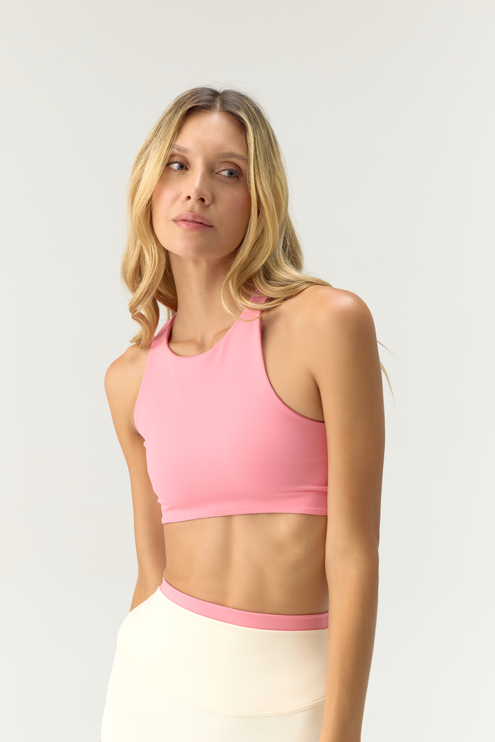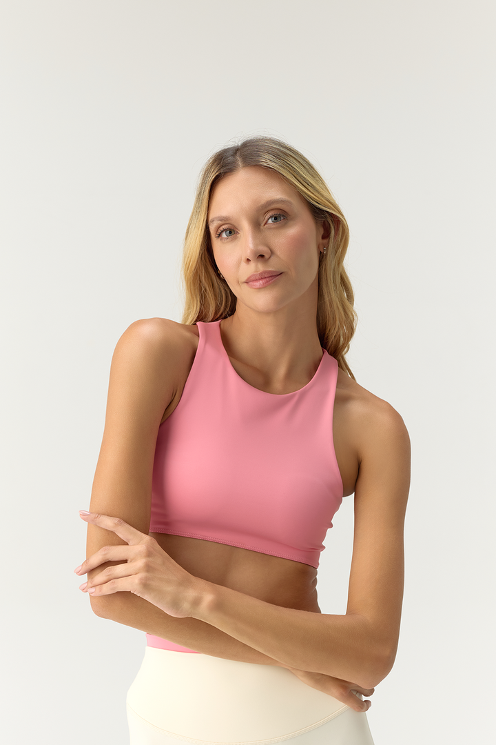 Diseñado para moverse contigo. Este top de cuello alto y espalda descubierta ofrece un soporte medio ideal para tus entrenamientos o días activos. Su estructura interna en el busto brinda seguridad sin sacrificar comodidad. Confeccionado en una textura suave de secado rápido y ajuste al cuerpo, es una mezcla perfecta entre funcionalidad y estilo.