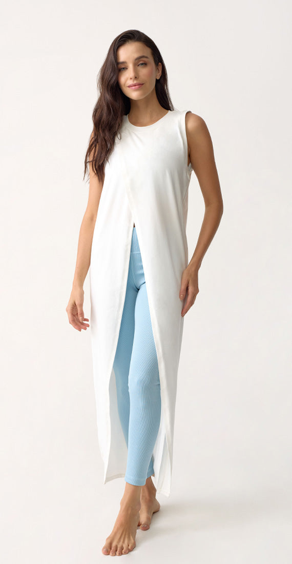 Suavidad, movimiento y sutileza en una sola prenda. La Túnica Ella en tono Coconut Milk es una invitación a fluir con gracia. Su silueta amplia y liviana brinda una sensación de libertad absoluta, perfecta para acompañarte en días de descanso.